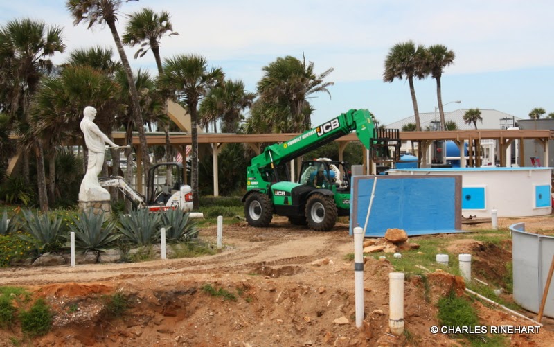 This is the entrance to the park right on Highway A1A. A plastic fence has been added here and extends around the construction area. However it is easy to photograph everything going on inside here. Photo 10-24-13.